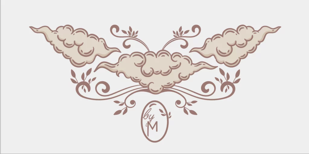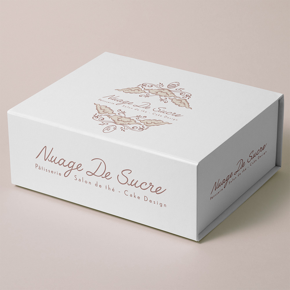 Les formes ornementales, les références nuageuses et les teintes douces évoquent la légèreté, la gourmandise et le savoir-faire artisanal, tout en conservant une esthétique intemporelle.