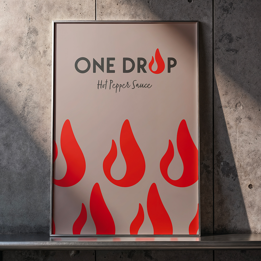 Le travail visuel met en avant la notion d’intensité et de caractère à travers des formes simples et répétées, évoquant directement le piquant et l’impact du produit.